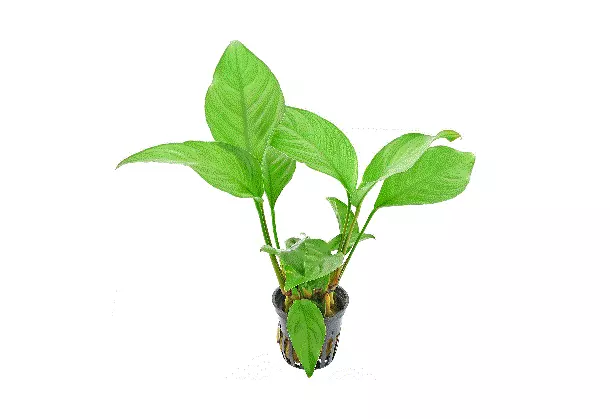 Planten har krypende rhizom som bladende vokser ut av. Rhizom blir 10 – 15 cm lang eller mer. Planten gror seg fast til innredning, som f.eks steiner og trerøtter. Rhizomet må ikke plantes ned i bunnlaget, da råtner den og planten dør. Planten blomstrer hyppig under vann. Anubias blir ikke spist av plantespisende fisk.