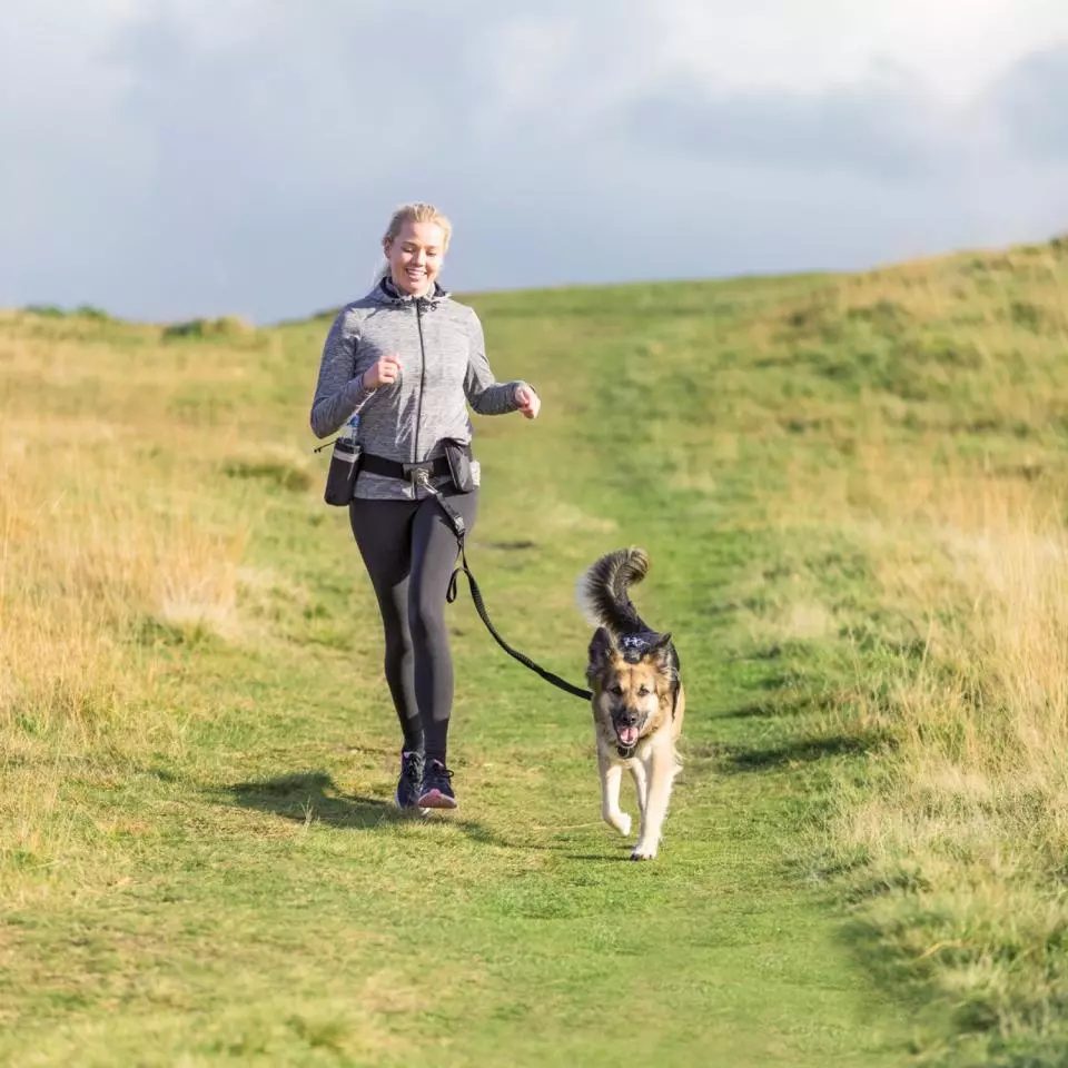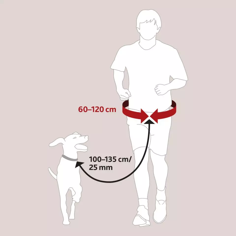 Beltet har 2 lommer. Linjen har håndtak og kan løsnes raskt på grunn av en snaplås, så den kan også brukes til vanlige turer. Beltet har reflekterende striper for synlighet og sikkerhet.