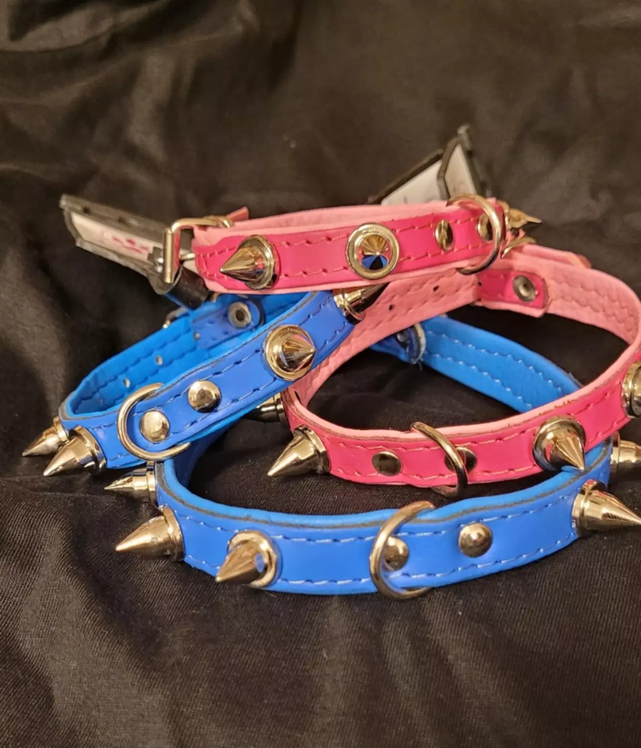 Utført i lær med nagler, Passer fra Chihuahua og oppover.
