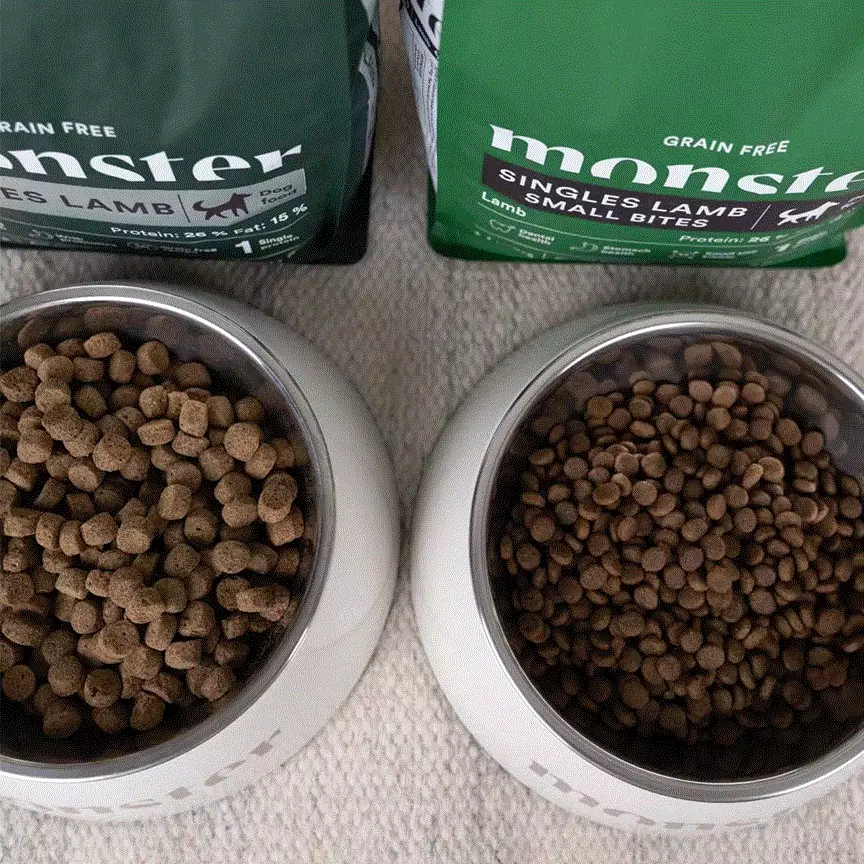 Lamm 54 % (färskt lamm 23 %, torkat lammprotein 23 %, lammfett 5 %, hydrolyserat lammprotein 3 %), hela ärtor, potatisflingor, torkade sockerbetsfiber, solrosolja, torkat äpple, sötpotatis, linfrö, torkad morot, hydrolyserad jäst (källa till mannanoligosackarider och betaglukaner), torkad cikoriarot (naturlig källa till inulin och fruktooligosackarider), torkad alfalfa, mineraler (med natriumhexametafosfat* 0,33 %), torkad broccoli, torkad spenat, torkade tranbär, torkade blåbär, torkad spirulina, glukosamin (100 mg/kg), kondroitinsulfat (100 mg/kg), växtextrakt (yucca schidigera, vippvallmo, rosmarin, labruskavin, gurkmeja, citrus, eugenia). *mineral för reducering av tandsten.