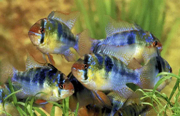 Mikrogeophagus ramirezi er en rolig og vennlig ciklide som lett blir sky hvis den holdes sammen med agressive/aktive fisker. Holdes helst i par.