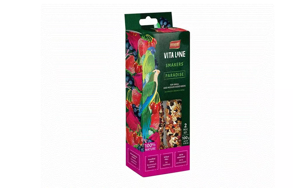 gul hirse, hvetemel, tørkede jordbær (11%), tørkede hyllebær (11%), kanarigressfrø, rød hirse, rød sorghum, tørket kiwi, tørkede gojibær (1,5%), amarantfrø, tørkede roseblader (0,5%).