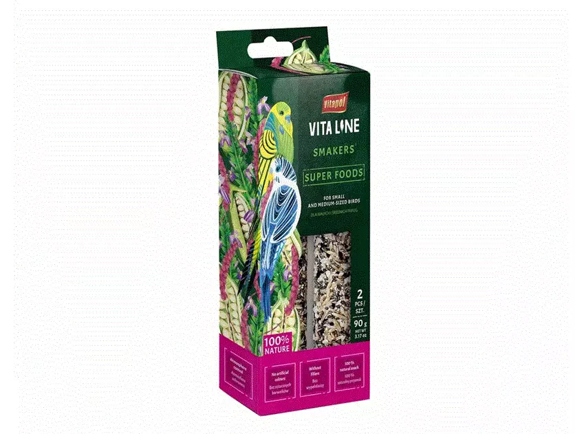 kanarigressfrø, hvetemel, rød durra, chiafrø (10%), gul hirse, svart spisskummenfrø, sesamfrø (2,5%), amarantfrø (2%), rødkløverfrø, gressfrø, salatfrø.
